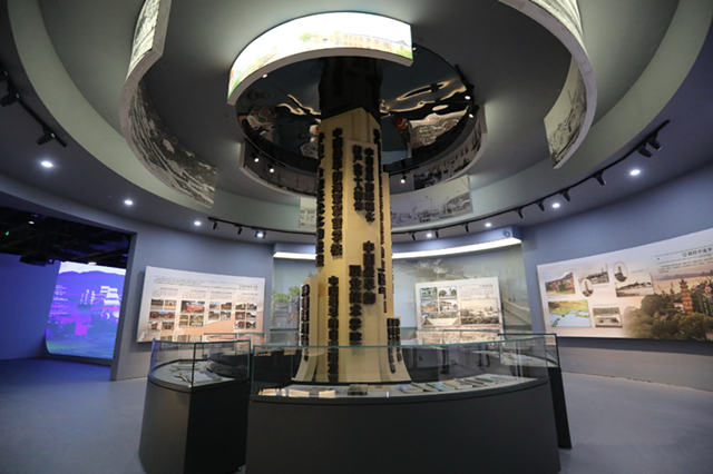 在二層的“自強之道——船政歷史文化陳列”中,大量運用了場景還原的方法,生動講述船政歷史。大型沙盤再現(xiàn)了船政十三廠熱火朝天的生產(chǎn)場景;微縮模型生動呈現(xiàn)了艦船制造的全過程;大型雕塑、模型還原了“左宗棠三顧宮巷”的場景、船政學堂教學場景、馬江海戰(zhàn)將士“艦雖亡,旗還在”的英勇精神等。記者看到,“福建艦”1∶100比例的模型攜帶著寧德艦等以福建城市命名的軍艦,一同亮相博物館。