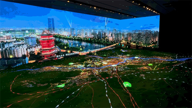 規(guī)劃館以“中國科技城、成渝副中心”為核心,對“一二三、白紅綠、新三國”城市名片進行充分展示,著重體現(xiàn)“人民城市人民建、人民城市為人民”的城市規(guī)劃建設理念。