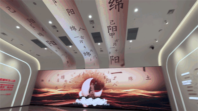 用半景畫與浮雕、多媒體的結合,打造出雅致的文化空間,以李白文化為代表,綜合展示綿陽古建遺存、歷史人物、非遺發(fā)展等璀璨文化,通過模型、展品與圖文的結合,講好綿陽文化故事。